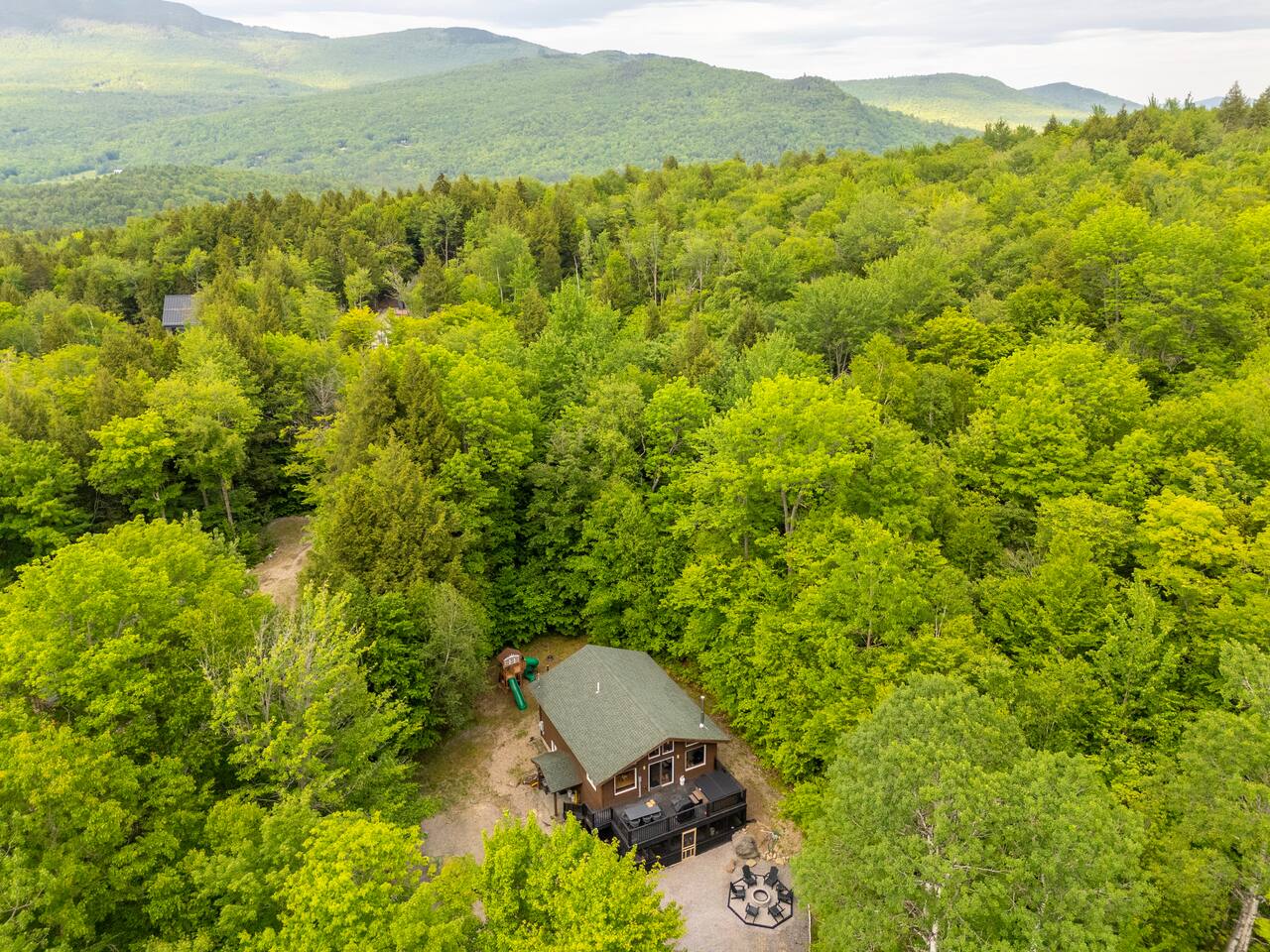 KEY FEATURES: ☀ 7 Person brand new Hot Tub ☀ 4-6 person Almost Heaven Barrel sauna ☀Screened in movie area under the porch with 55" WiFi TV! ☀ LOCATION! 6 min drive to Sunday River!! ☀ Sleeps 12; 5 bedrooms, 3 King, 1 Queen, 4 twin ☀ 3 full Bathrooms w/a full bathroom ensuite in the master ☀ Modern and well-equipped kitchen and dining space ☀ Wood burning stove ☀ Central heat AND A/C ☀ Board games ☀ Dog-friendly ☀ Outdoor firepit with seating ☀ Grill and outdoor seating ☆☆ BEDROOMS ☆☆ This modern and stylish chalet style home comfortably accommodates 12 guests across 5 bedrooms and 2 levels of living space. The is a master bedroom on each floor. On the first floor, the master bedroom holds a king sized bed and an ensuite bathroom. This first floor also has 2 other bedrooms and an additional bathroom, laundry, and jacket storage. One of those bedrooms has a king bed and the other has 2 bunk beds - each of these bedrooms has a smart HDTV for your entertainment. As you head upstairs, you'll be greeted by 2 more newly renovated bedrooms. The king bedroom and another with a queen. Many guests tend to book with 2+ families and enjoy the space and layout. ☆☆ BATHROOMS ☆☆ There are three full bathrooms in the home, each of them stocked with all the essentials you need for the duration of your stay! Two of these bathrooms are located on the main floor when you enter and the third is located upstairs with the remaining bedrooms, kitchen, and living room. ☆☆ KITCHEN, DINING, GREAT ROOM ☆☆ The bright and airy kitchen flows into the dining area and great room. It is fully equipped with all the appliances, utensils and cookware you need to feel at home. This thoughtfully-designed home provides a culinary area in addition to a dining and living room area. The great room is situated on the main level of the home and is kitted with an HDTV with a Firestick/Roku entertainment system, allowing full access to your favorite streaming services. Additionally, the wood burning stove is available for use and tends to be a guest favorite in the winter! ☆☆ OUTSIDE SPACE ☆☆ Off the great room, enjoy direct access to the first outdoor space, which is the 2nd level porch! This fantastic outdoor oasis offers a brand new hot tub with adequate seating for 6-7 guests, a Weber gas grill, and an outdoor table with seating for 8+ guests! Head downstairs off the porch and enjoy a barrel sauna, screened in outdoor movie area with a 55" WiFi TV, complimented by a firepit and seating! On the backside of the property a Backyard Discovery playset is ready for the little ones to enjoy! ★☆ Book Today & Let Us Take Care of You at Sunday River Chalet!! ☆★